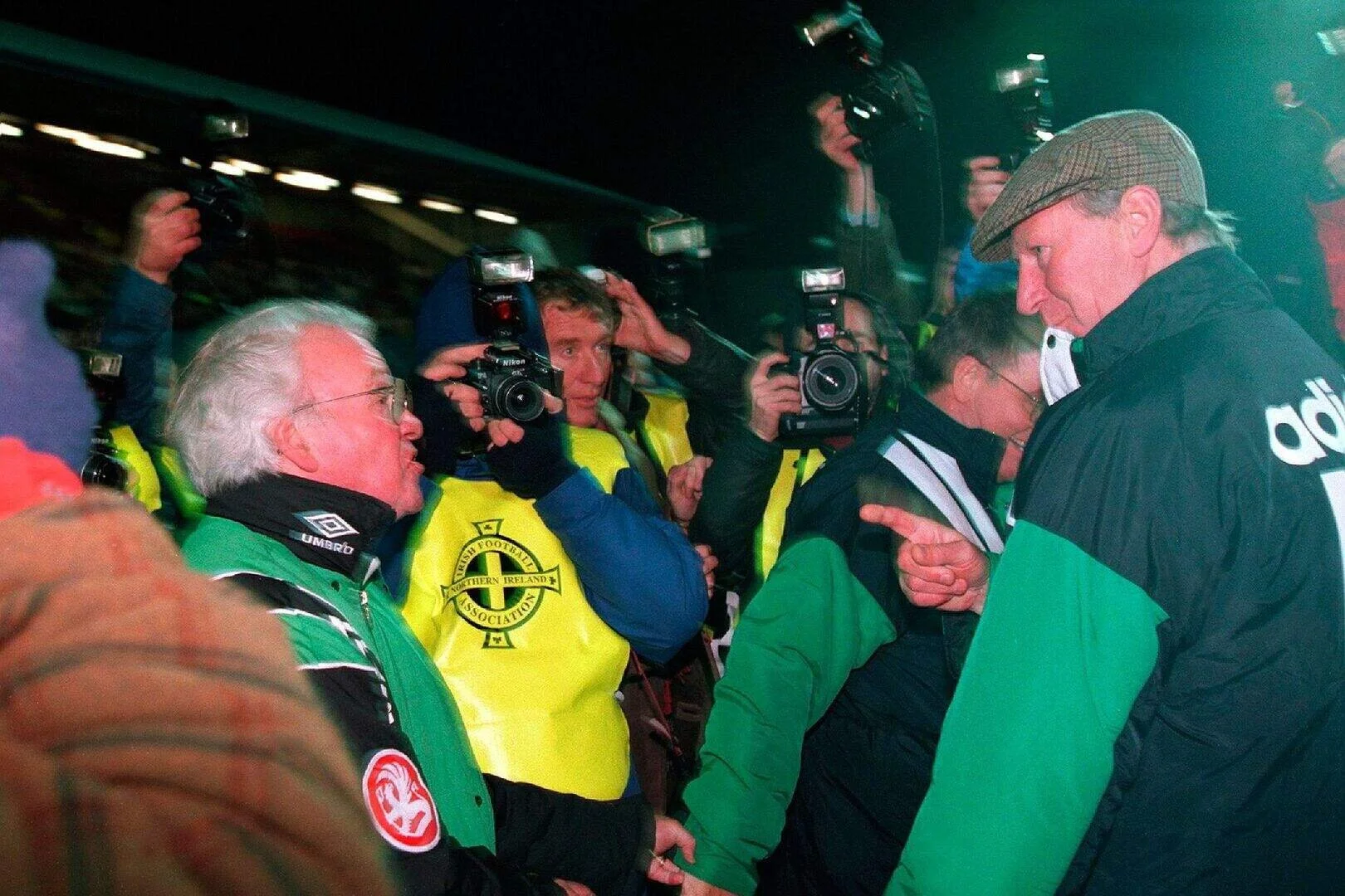 Amid the chaos, Jack Charlton went over to his counterpart, Billy Bingham, to shake hands and wish him well on his retirement.